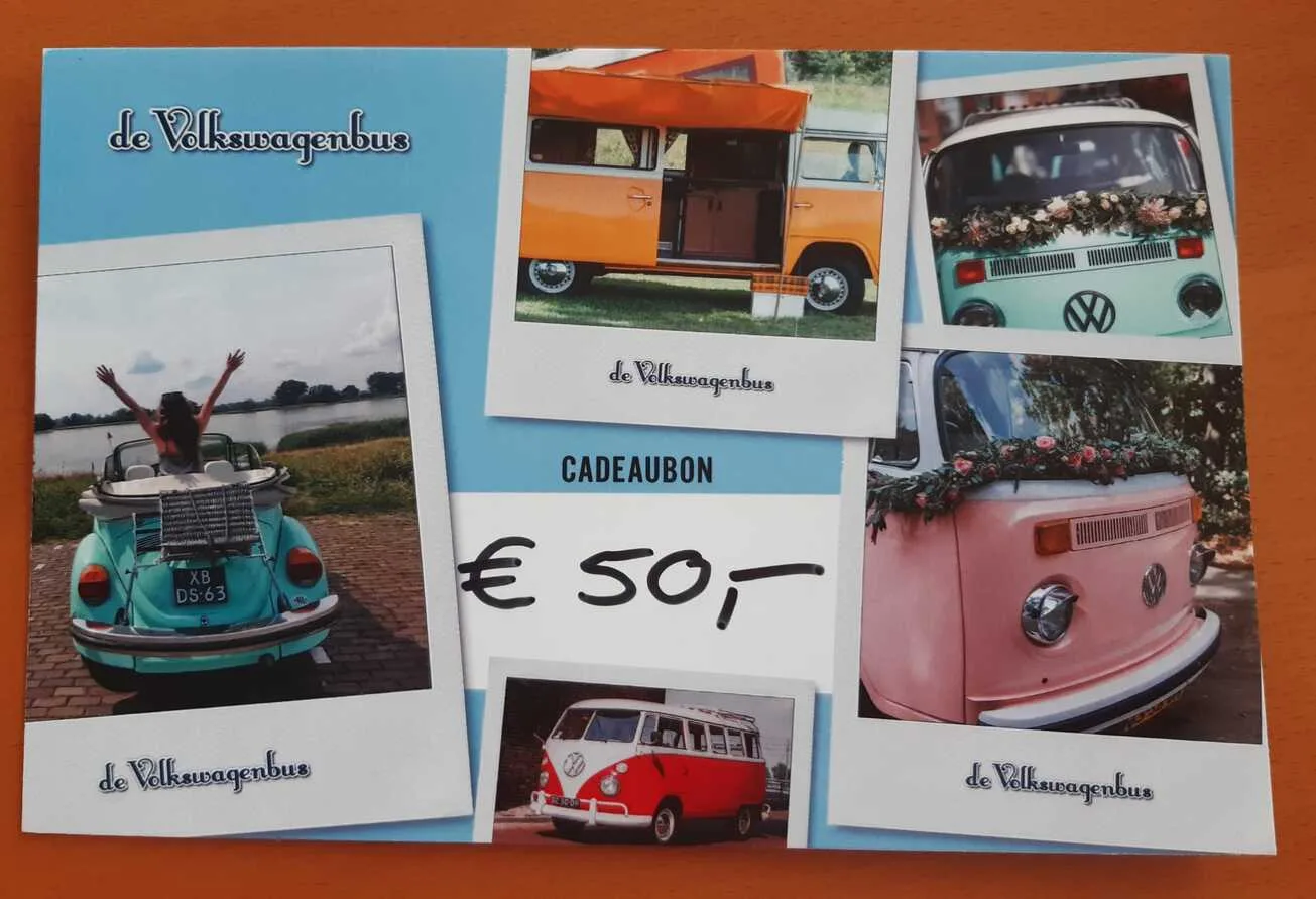 Wil je iemand écht verrassen? Met een cadeaubon van Vintage Road Trips geef je geen gewoon cadeau, maar een unieke ervaring. Laat je partner, vriend, vriendin of familie op avontuur gaan in een klassieke Volkswagenbus, Kever, Citroën 2CV of een andere iconische oldtimer. De cadeaubon wordt direct per e-mail verstuurd naar jou of rechtstreeks naar de ontvanger.