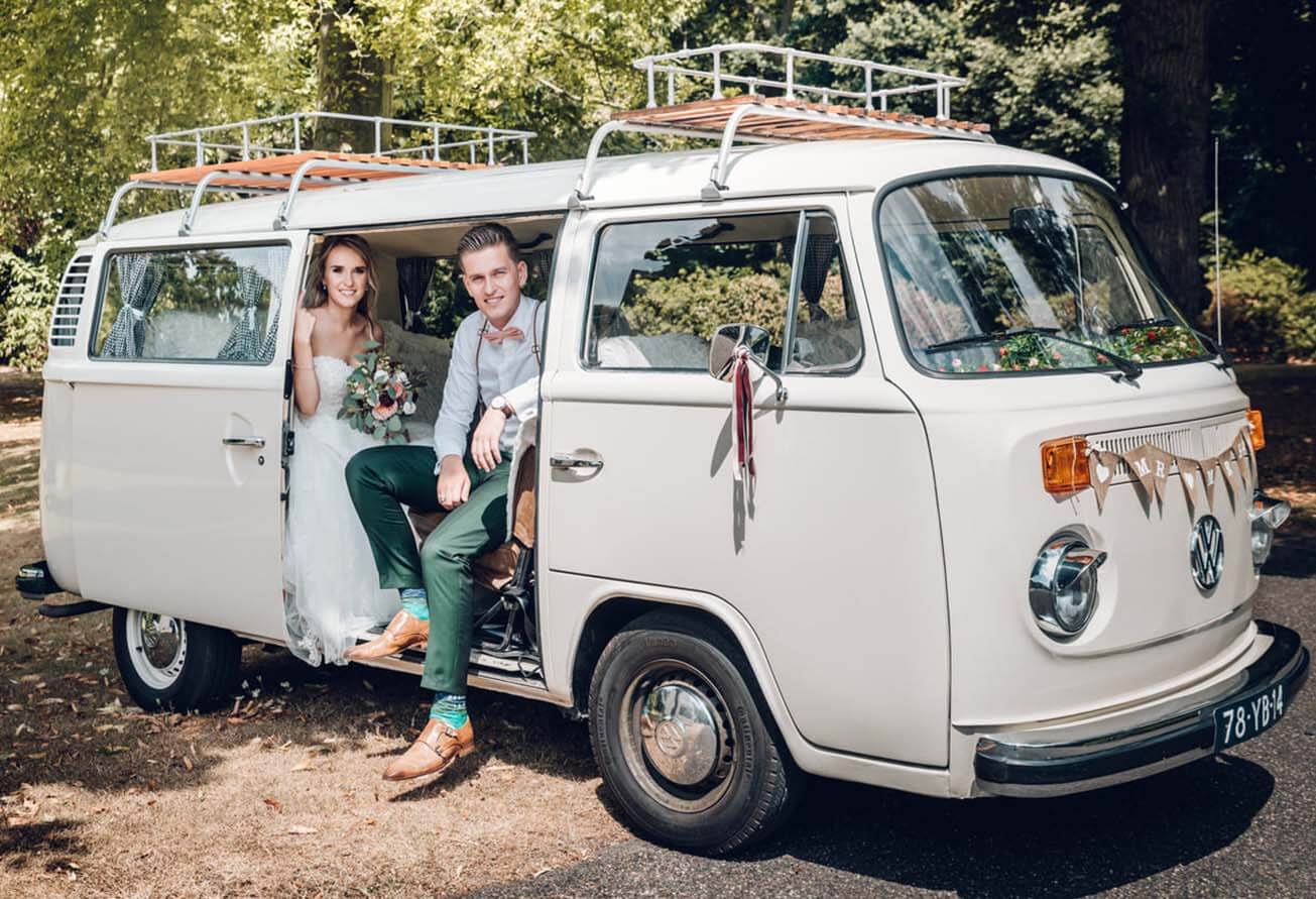 Zijn jullie op zoek naar uniek en sfeervol trouwvervoer? Met ons Volkswagen trouwvervoer maken jullie een romantische en onvergetelijke entree op de mooiste dag van jullie leven. Van iconische T1 en T2 busjes tot charmante VW Kevers: deze klassieke auto’s zorgen voor een nostalgische beleving en schitterende trouwfoto’s.