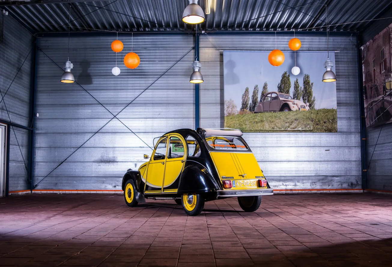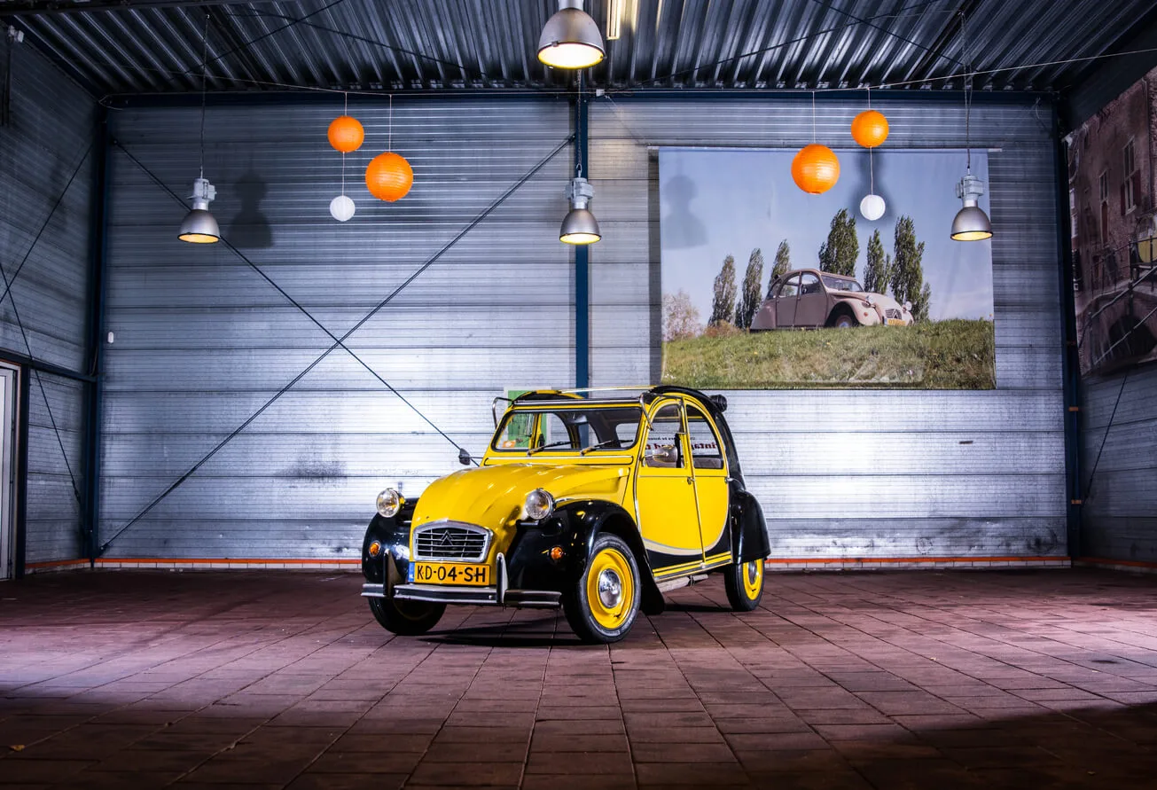 Willen jullie een opvallende en vrolijke klassieke auto huren voor jullie bruiloft? Onze Citroën 2CV Charleston Geel trouwauto combineert speelse charme met nostalgie en maakt jullie entree onvergetelijk. Deze oldtimer is geschikt voor maximaal 4 personen (inclusief bestuurder) en levert prachtige trouwfoto’s op die jullie dag nog specialer maken.
