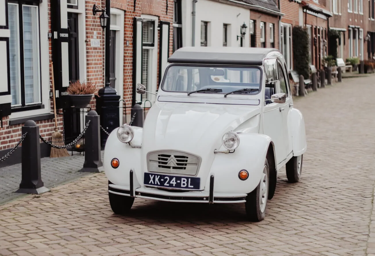 Zoeken jullie een charmante en elegante klassieke auto voor jullie bruiloft? De Citroën 2CV Dolly Wit trouwauto straalt romantiek en nostalgie uit en past perfect bij een stijlvolle trouwdag. Deze geliefde oldtimer is geschikt voor maximaal 4 personen (inclusief bestuurder) en geeft jullie trouwfoto’s een tijdloze en pure uitstraling.