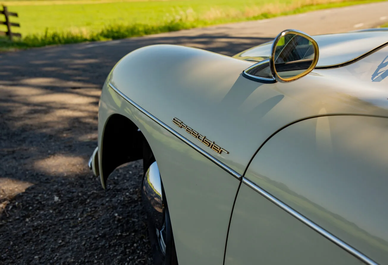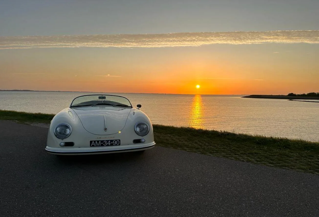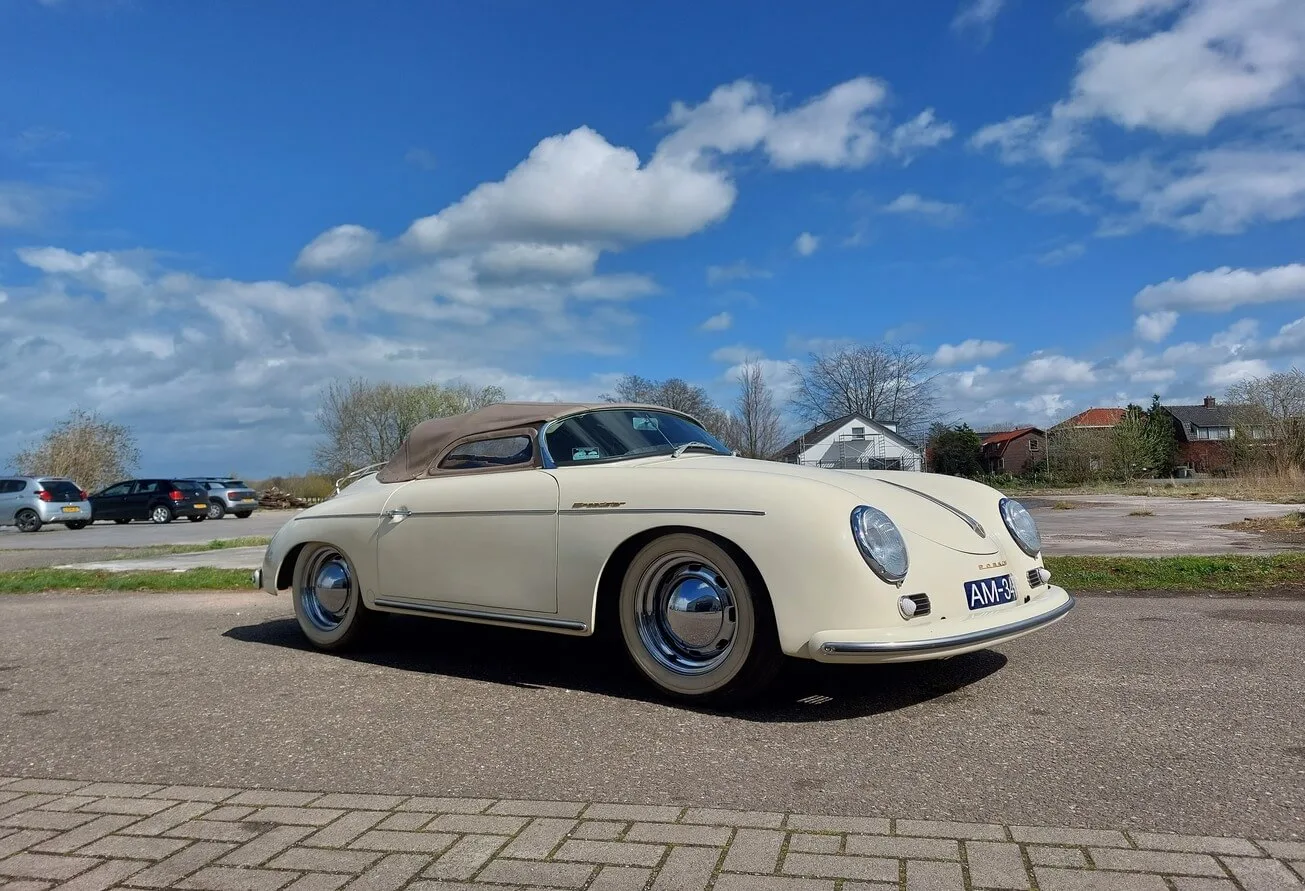 Onze Porsche 356 Speedster is voorzien van ivoorkleurige lak (origineel Porsche), een donker bruin lederen interieur en een beige cabrioletkap. Onze Porsche 356 Speedster is een replica van het origineel uit 1958. Het betreft een replica, omdat een originele Porsche 356 Speedster eigenlijk niet meer te vinden is of anders onbetaalbaar is. In Nederland rijden dan ook eigenlijk geen originele Porsche Speedsters rond.