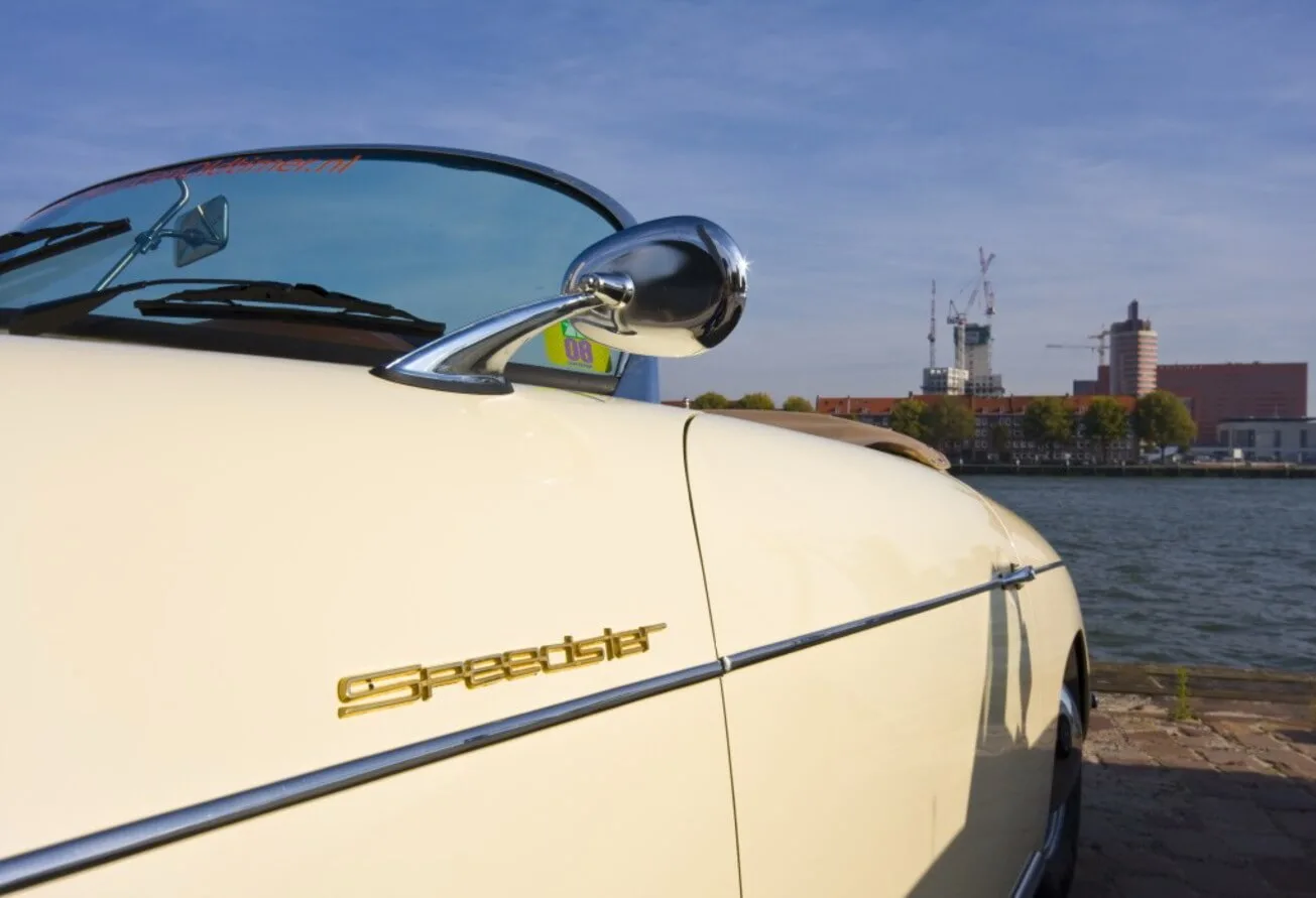 Onze ivoorkleurige Porsche 356 Speedster met donkerbruin lederen interieur is een replica van het originele model uit 1958. Omdat originele Speedsters bijna onvindbaar zijn, is dit de unieke kans om toch in zo’n klassieker te rijden.