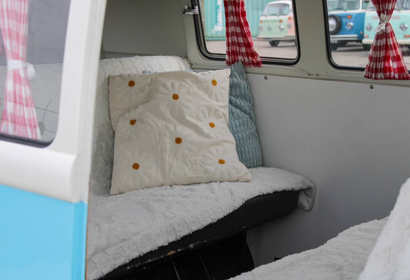 De T1 is het eerste type Volkswagenbus dat ooit geproduceerd werd en herken je meteen aan de iconische witte spijl aan de voorkant. Met haar frisse uitstraling en klassieke charme is Blue Sky klaar voor nieuwe avonturen samen met jullie.