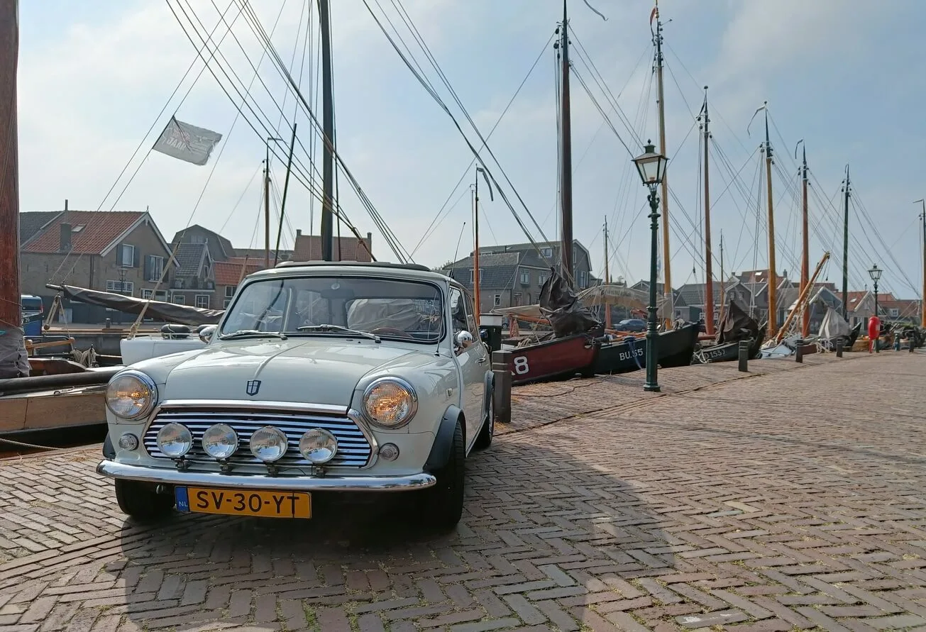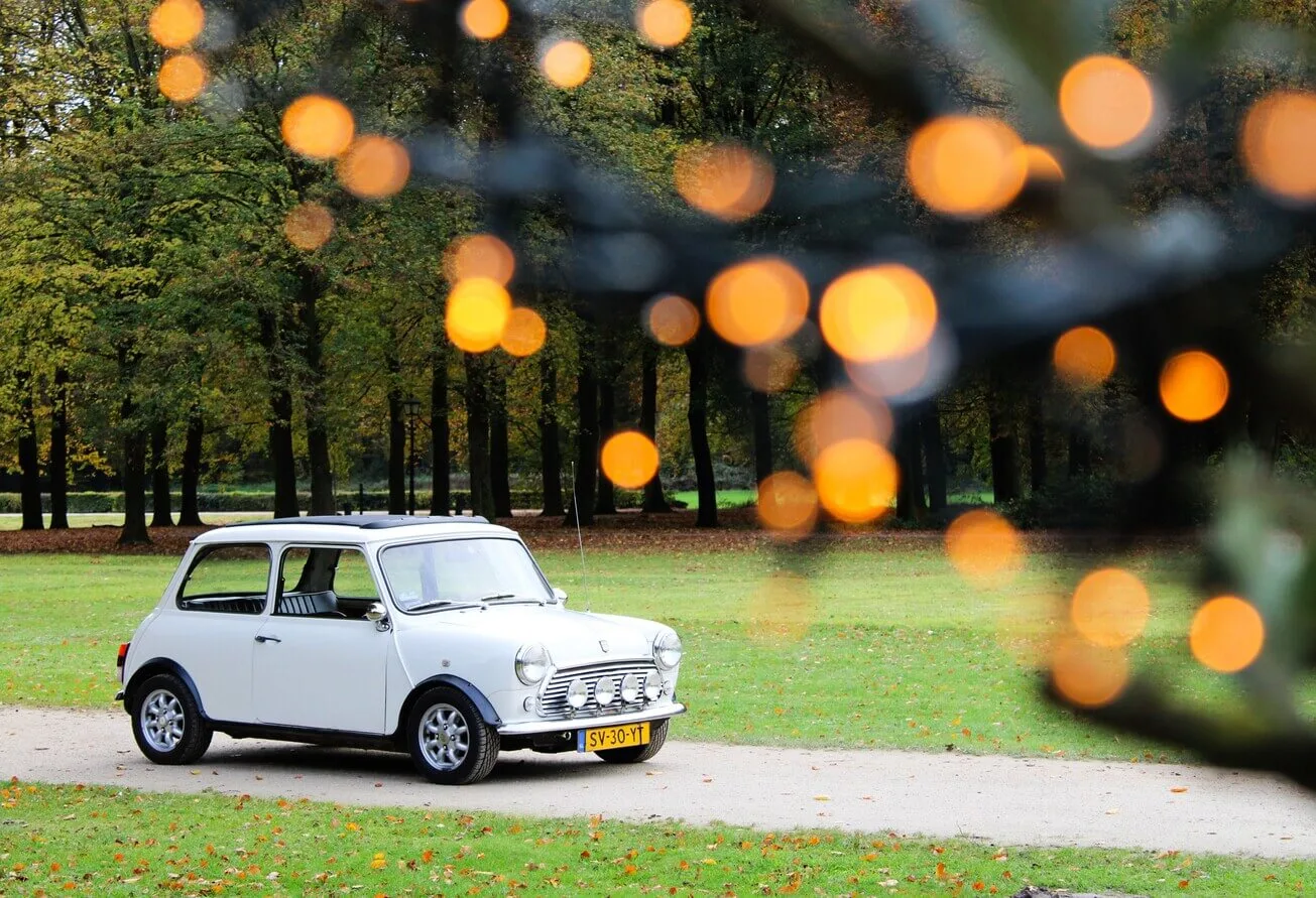 De witte Mini Cooper uit 1988 is een tijdloze klassieker die gegarandeerd voor een glimlach zorgt. Deze compacte maar karaktervolle oldtimer biedt ruimte aan vier personen en voelt zich helemaal thuis bij een rustige snelheid tot 90 km/u.