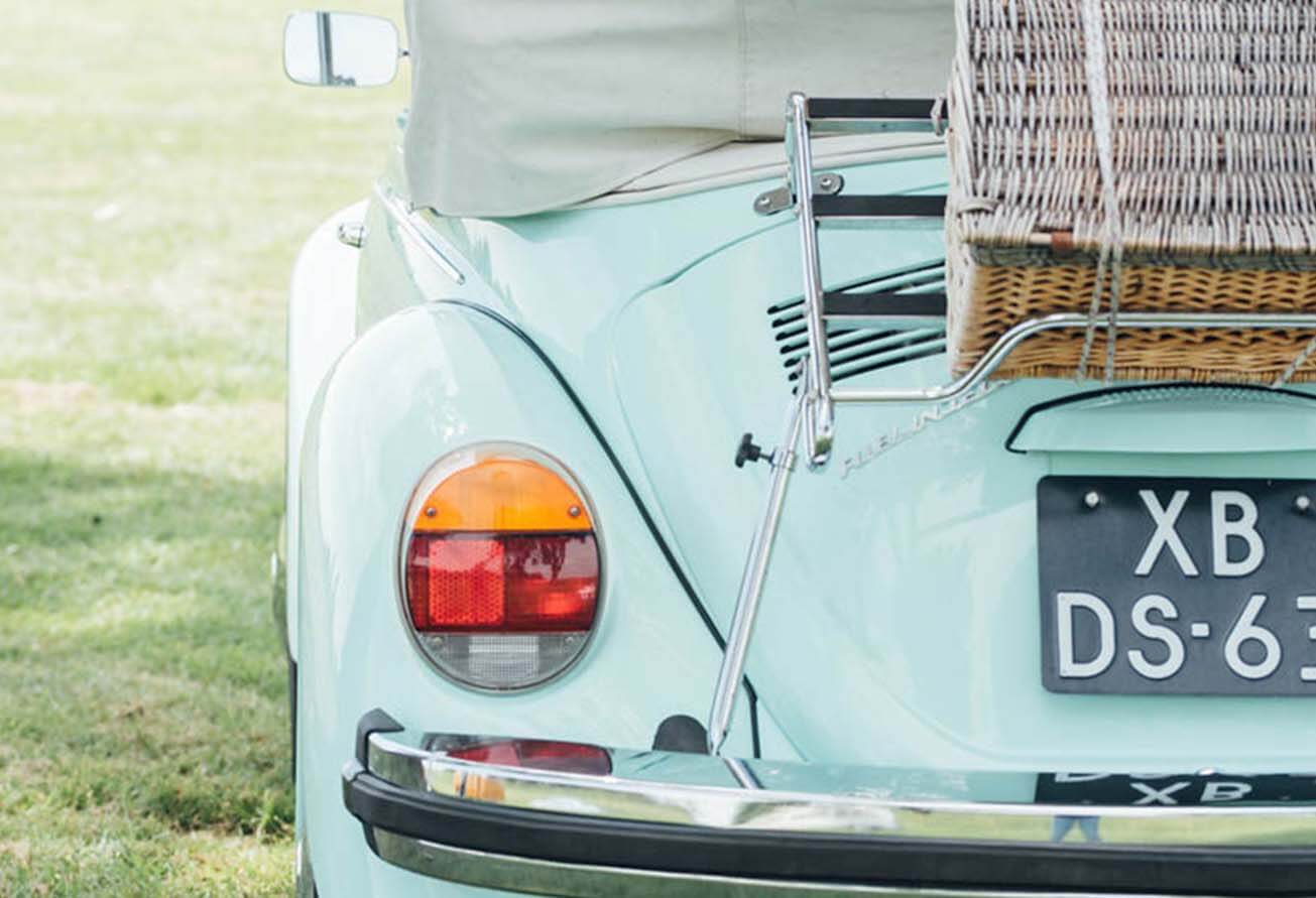 Om haar klassieke charme te behouden, is Minty voorzien van de originele Kever-velgen met chromen wieldoppen. Het kofferrekje met picknickmand maakt het plaatje compleet en zorgt voor dat extra vleugje nostalgie.