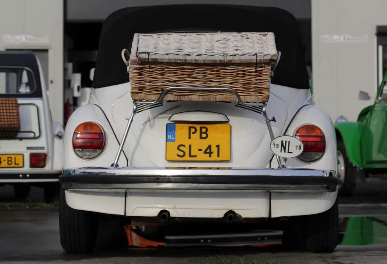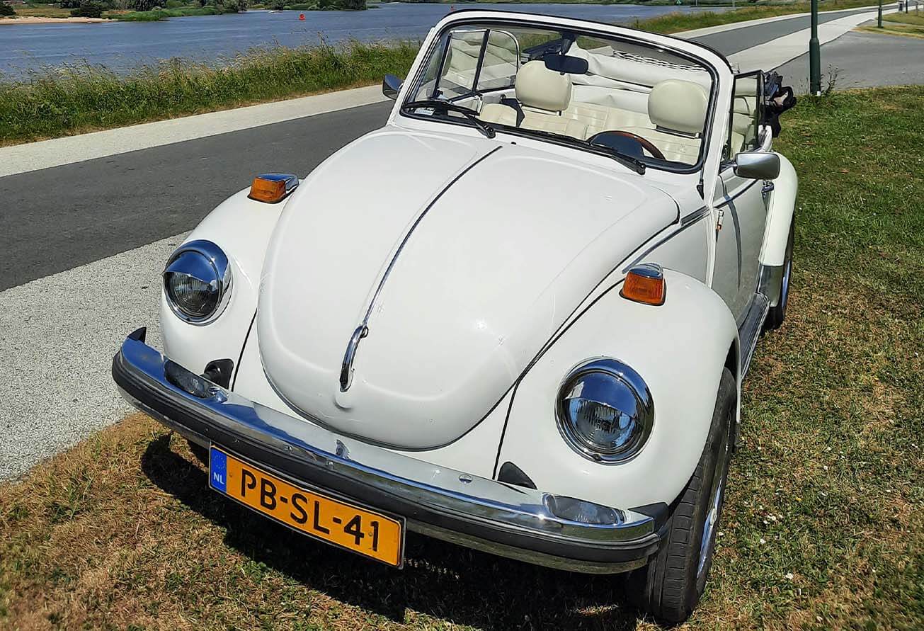 Naast onze witte Miss White hebben we ook Miss Black & White: een stijlvolle Volkswagen Kever cabriolet met een zwart cabriodak als speels contrast. Verder is ze net als haar zus volledig wit uitgevoerd, wat haar een elegante en tijdloze uitstraling geeft.