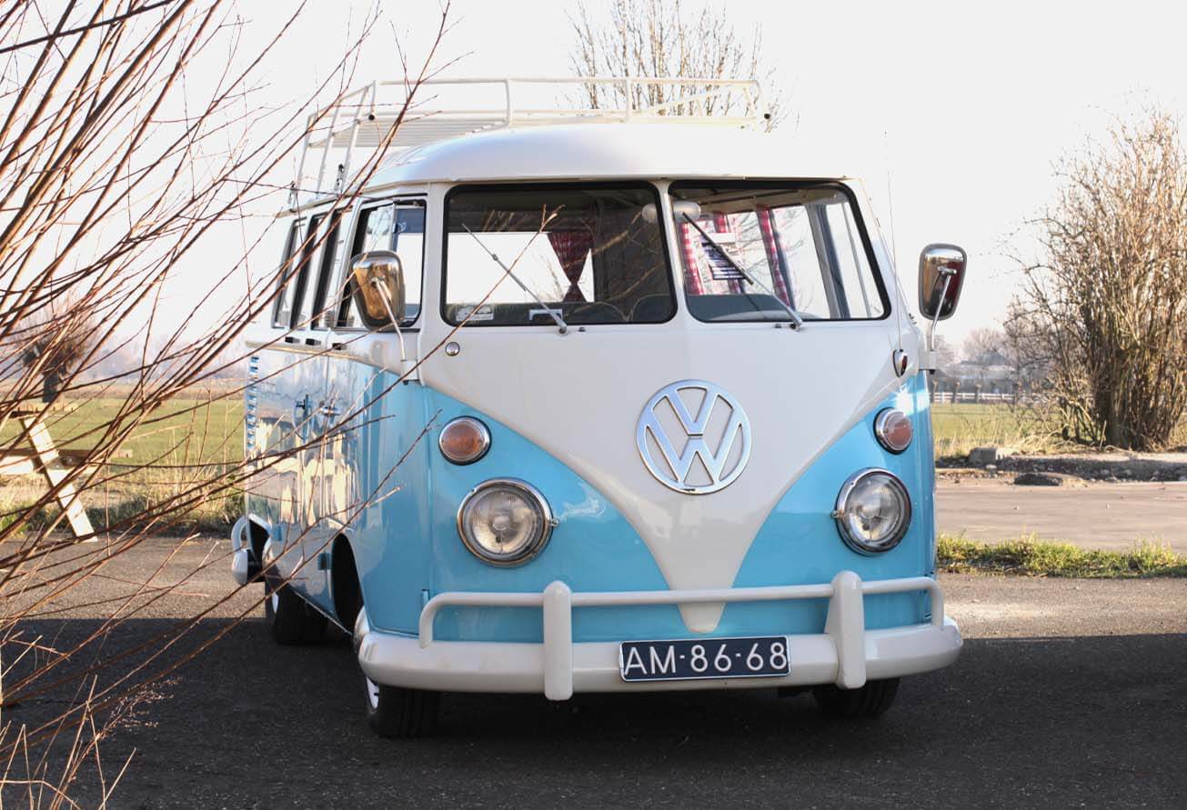 De lichtblauwe Blue Sky T1 bus is sinds begin 2021 nieuw in ons assortiment. Deze bus komt uit het jaar 1967 en is het eerste type Volkswagenbusje dat ooit door Volkswagen is gemaakt. Kenmerkend voor een T1 (type 1) bus is de witte spijl aan de voorzijde. Deze bus staat te in de startblokken om jullie als bruidspaar te voorzien van een originele trouwauto!